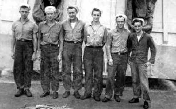 L-R, Jim Johnson, unident.,unident., John Pruden LTJG