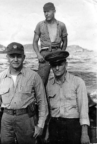 Unidentified coxswain, LT. Bill King, Chief Heppe